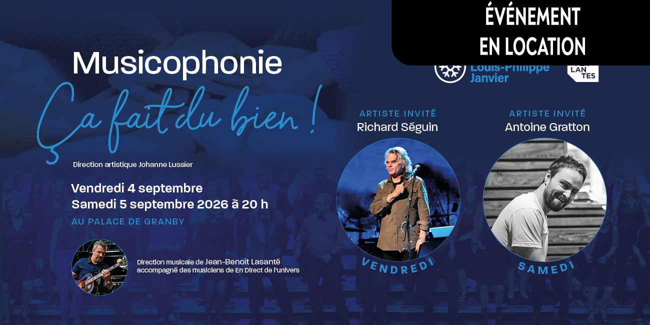 Le Palace de Granby accueille une riche programmation de spectacles de chanson et de musique, réunissant des artistes québécois et internationaux de renom. Pop, rock, folk, jazz ou musique acoustique : chaque spectacle est une occasion de vivre la musique de près, dans une ambiance intime et conviviale.