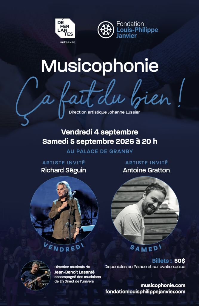 Un spectacle haut en couleurs avec ses 75 choristes accompagnés par les musiciens de « En Direct de l’Univers » sous la direction de Jean-Benoit Lasanté.  Cette édition sera spéciale puisque nous fêterons les 40 ans que Louis-Philippe aurait eu.