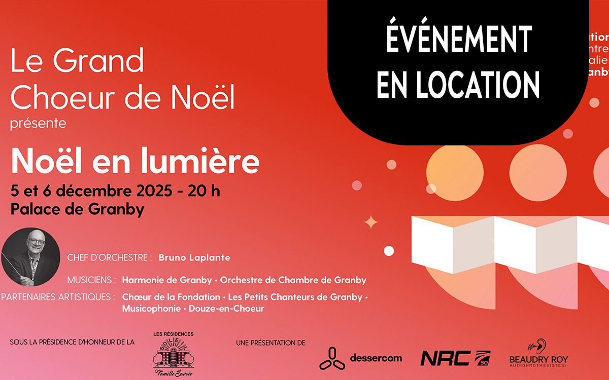 ÉVÉNEMENT EN LOCATION Le Grand Chœur de Noël présente NOËL EN LUMIÈRE Plongez dans la magie du temps des Fêtes avec un concert-bénéfice inoubliable, où musique et lumière s’unissent pour […]
